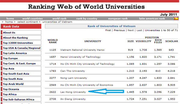 Lạc Hồng vươn lên xếp hạng 7 các Đại học Việt Nam theo www.webometrics.info