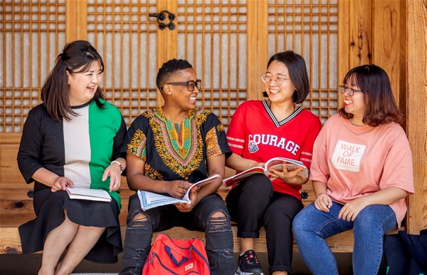 Lê Thụy Phương Thủy cùng với các bạn quốc tế tại Hàn Quốc