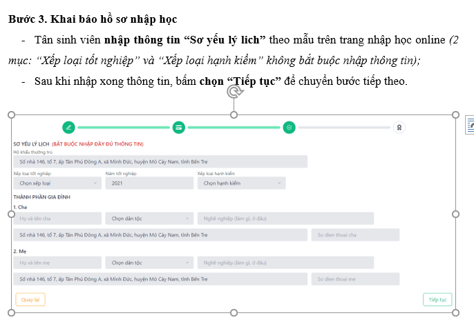 Thí sinh vui lòng đăng ký nhập học trực tuyến TẠI ĐÂY