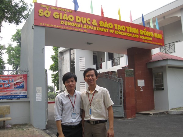 Thầy Trần Văn Diệm và thầy Lê Tiến Dũng chụp hình lưu niệm