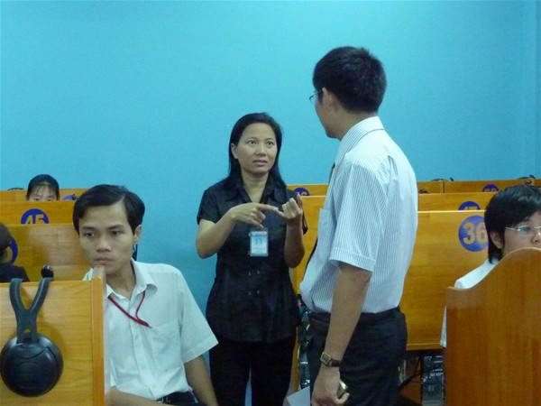 TS Nguyễn Văn Tân - Trưởng phòng NCKH - Sau đại học - KĐCL đang hướng dẫn cho các thầy cô khoa Đông phương về chương trình SPSS