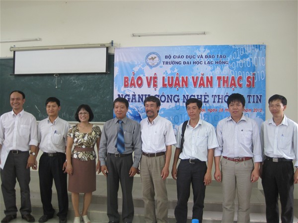 Sáng ngày 28/7/2012, Trường Đại học Lạc Hồng tổ chức buổi bảo vệ luận văn thạc sĩ cho học viên cao học ngành Công nghệ thông tin khóa 1 và khóa 2. Đến tham dự buổi bảo vệ luận văn có TS Nguyễn Văn Tân - Trưởng phòng Nghiên cứu khoa học - Sau đại học - Kiểm định chất lượng, PGS.TS Trần Văn Lăng - Trưởng khoa Công nghệ thông tin cùng các thầy cô trong hội đồng đánh giá luận văn. Ngoài ra, đông đảo học viên khóa 1 và khóa 2 cũng đến tham dự buổi bảo vệ để động viên tinh thần đồng thời học hỏi kinh nghiệm từ các thầy cô hội đồng và học viên bảo vệ.