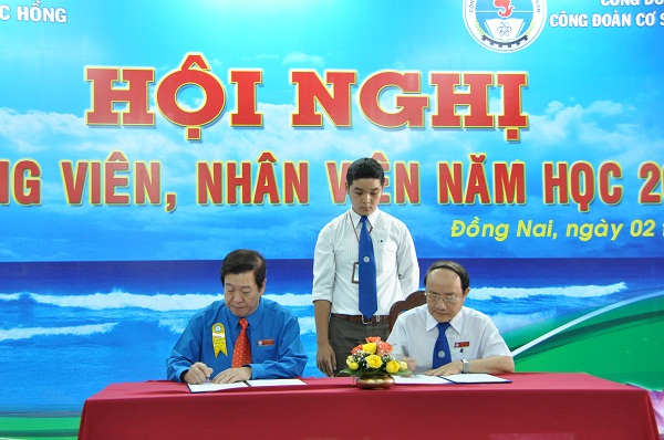 Ngoài việc hội nghị tập trung trí lực của tập thể để đóng góp ý kiến xây dựng trường ngày một vững mạnh hơn. Tại Hội nghị, lãnh đạo nhà trường đã thông qua báo cáo tổng kết năm học 2011 – 2012, đề ra phương hướng hoạt động trong năm. Ngoài ra trong Hội nghị, NGND.TS. Đỗ Hữu Tài – Chủ tịch Hội đồng Quản trị, Hiệu trưởng nhà trường đã bộc bày tấm chân tình của mình với toàn thể CB,GV, NV tham dự: “ … vì tôi là một nhà giáo. Xin mọi người đừng nhìn tôi là một trọc phú mang lớp giáo dục để bóc lột lao động, gom góp cho riêng mình. Với tất cả mọi người tôi sống bằng nghĩa đồng nghiệp, bằng tình huynh đệ…”. Lời tâm tình ấy của “ Thầy Tài” như đã cởi bỏ chiếc áo nghiêm nghị của chương trình. Thay vào đó là một Bản "Thoả ước Lao động tập thể” được thiết lập bởi tình đồng nghiệp, trách nhiệm quyền lợi chung của tập thể sư phạm nhà trường. Thay mặt cho quyền lợi của tập thể lao động, TS. Diệp Cẩm Thu _ CT.CĐ nhà trường đã cùng với NGND.TS Đỗ Hữu Tài_ CT.HĐQT đặt bút ký kết Thỏa ước Lao động năm 2012-2013. CB,GV,NV hưởng những quyền lợi chính đáng và có nghĩa vụ đáp trả công bằng trước quyền lợi mình được hưởng thụ.