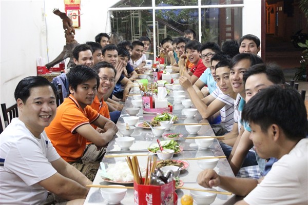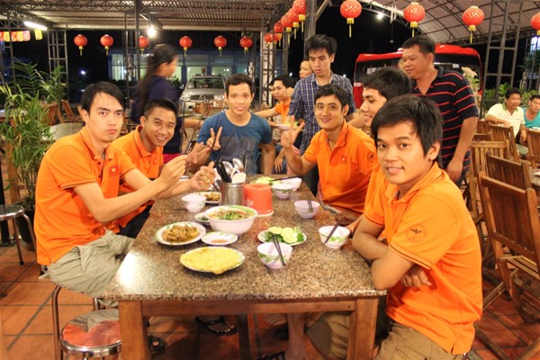 Thành viên hai đội dùng cơm tối tại nhà hàng Quỳnh Giao