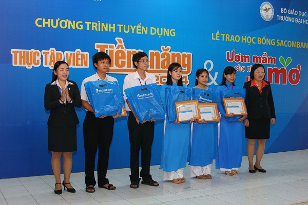Cũng tại chương trình đã diễn ra hoạt động trao 5 suất học bổng cho sinh viên Khoa Tài chính Ngân Hàng có hoàn cảnh khó khăn nhưng nỗ lực phấn đấu và đạt nhiều thành tích tốt trong học tập và rèn luyện: SV Nguyễn Cao Tài – 11TC114; SV Nguyễn Hoàng Sang – 11TC114; SV Vương Thị Lệ Quyên – 11TC118; SV Lê Thị Yến – 11TC113 và SV Trần Thị Ngọc Trang – 10TC111. Giá trị của mỗi suất học bổng là 3 triệu đồng. Kế đó là hoạt động giao lưu giải đáp thắc mắc của BLĐ Sacombank và cuối cùng là hoạt động tuyển dụng thực tập viên.