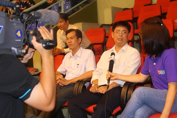 ThS. Lâm Thành Hiển - Phó Hiệu trưởng trả lời sự quan tâm của báo giới