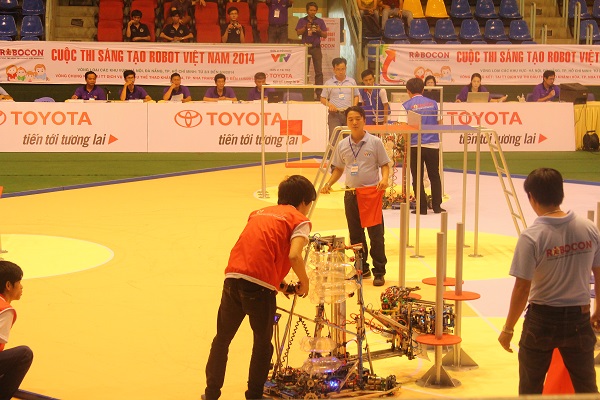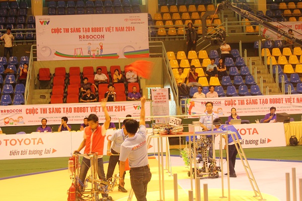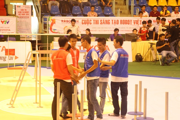Tại vòng 2, BTC sẽ chọn ra 10 gương mặt xuất sắc nhất để tiến vào Cuộc thi Sáng tạo Robot Việt Nam 2014 – toàn quốc, được diễn ra tại TP.Nha Trang từ 05/05-10/05/2014. Trong buổi sáng ngày hôm nay, hầu hết các đội Robot Lạc Hồng đều phơi bày hết chiến lược thi đấu và phô diễn những đường nét di chuyển tinh tế và khéo léo.