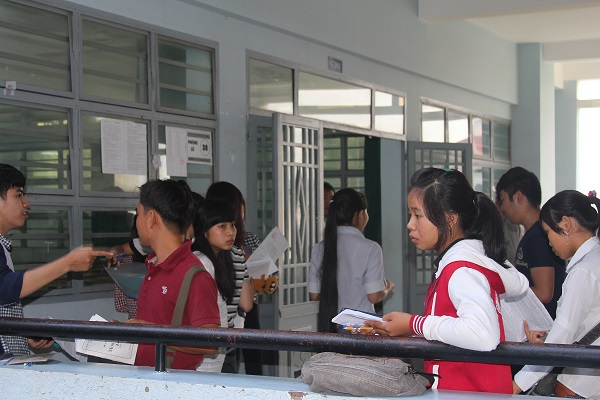 Thí sinh chờ đợi gọi tên vào phòng thi