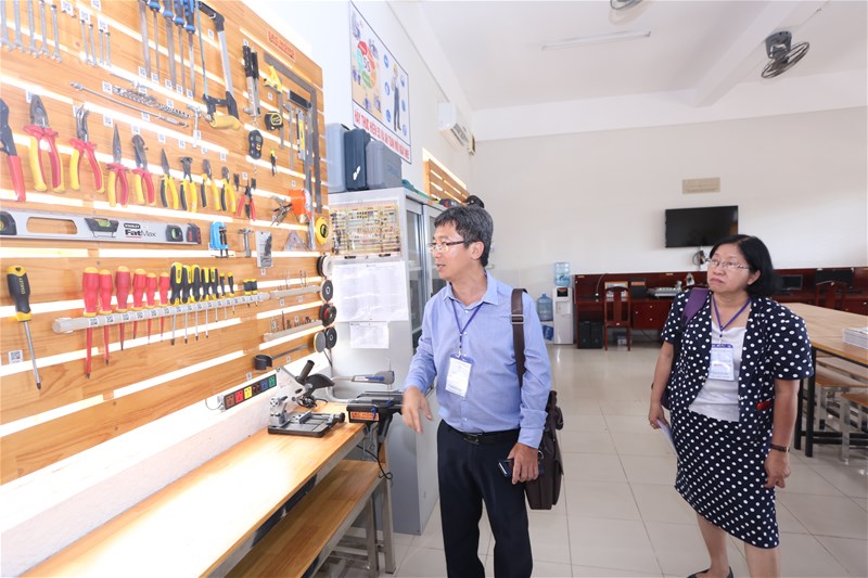 Đoàn khảo sát kỹ các phòng thực hành thí nghiệm