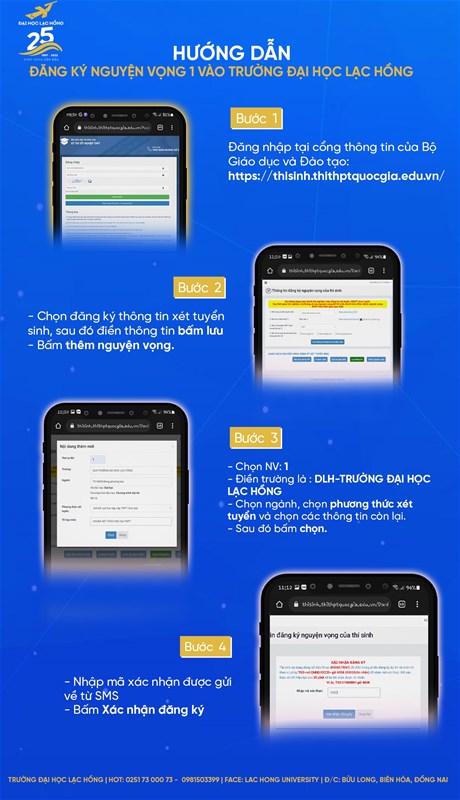 Hướng dẫn đăng ký nguyện vọng 1 vào Đại học Lạc Hồng