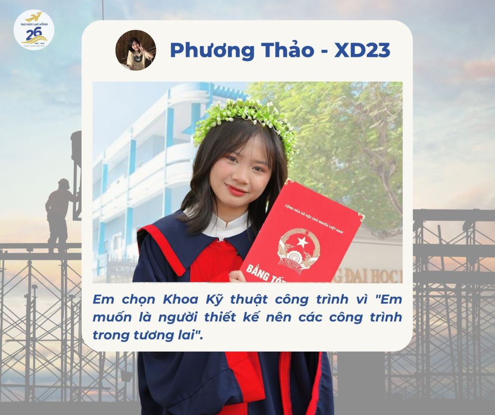 "Kinh tế đang phát triển, xây dựng nhiều công trình hiện đại, khang trang ngày càng tăng. Học ngành xây dựng sẽ có nhiều cơ hội việc làm. Nhất là đối với Nữ" - Tân sinh viên Phương Thảo nói về quyết định của mình khi chọn học ngành Xây dựng.