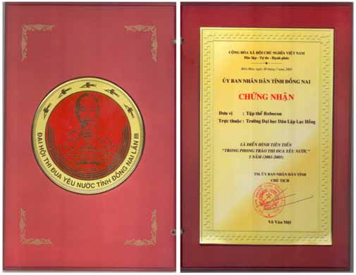 Giấy chứng nhận tập thể robocon do ủy ban nhân dân tỉnh Đồng Nai trao tặng