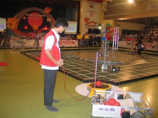 Robot tự động của đội Lạc Hồng 1 đang thi đấu