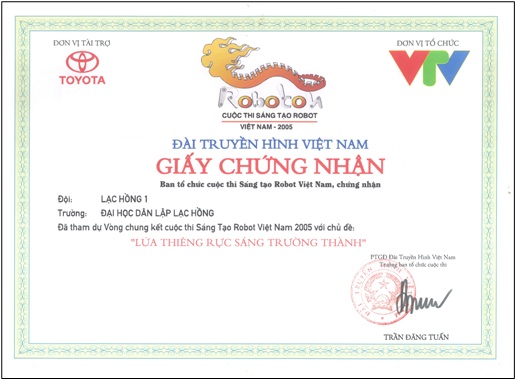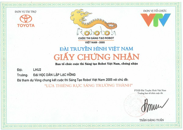 Đội đã thi đấu xuất sắc tại vòng loại khu vực phía Nam và lọt vào chung kết cuộc thi Sáng Tạo Robot Việt Nam 2005 với chủ đề "Lửa Thiêng Rực Sáng Trường Thành". Đội tuyển đã vinh dự được công nhận là điển hình tiên tiến trong phong trào thi đua yêu nước tỉnh Đồng Nai lần 3 – 2005.
