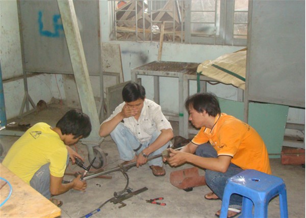 | Thầy Đoàn Dương Quý đang hướng dẫn sinh viên chế tạo Robot |