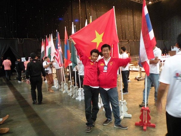 Đạt và đồng đội tại cuộc thi robocon Châu Á Thái Bình dương 2011 do Thái Lan đăng cai